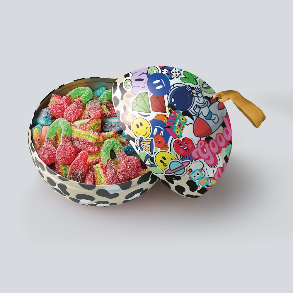 Straight from Santa’s workshop (well, almost). This big, shiny 20cm tin bauble is bursting with Christmas magic and half a kilo of delicious Swedish candy.